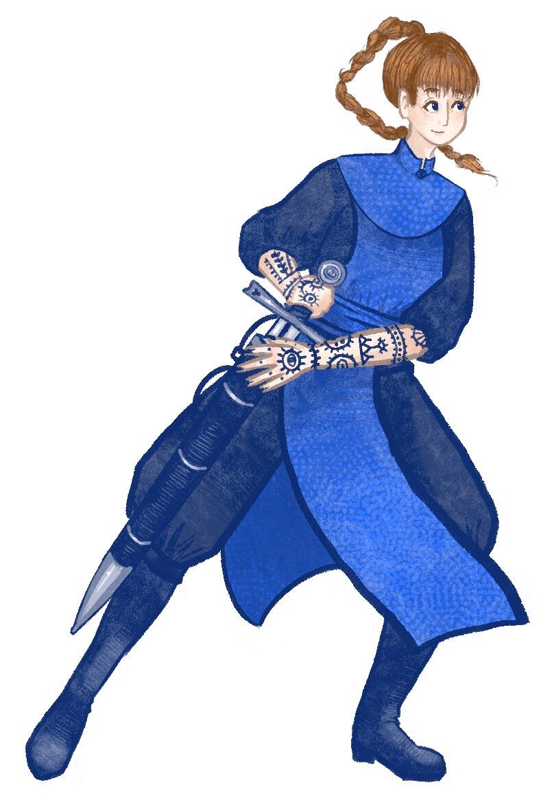 The Pincian City is the smallest and oldest Dominion and is the center of power and authority of The Universal Church. The Throne of The Pincian is elected by a council of high ranking officials that convenes every 20 years, except in times of emergency. The Throne of The Pincian takes on the name Sedia upon Coronation, and their Blade is given the name Spada.As the Pincian is a place of many secrets and potential for treachery, so for many years the Sedias have made sure to keep their Blades free from such matters–the erasure of memory. Upon elevation, this Spada (rumored to be from a foreign land given the strange markings that cover their arms) had her whole life prior erased. Nightly, circumstances permitting, she gives a detailed account of all they have thought and done that day to Sedia, who then takes all memory of such things away. Cultural depictions often depict Spadas as fanatical, but those who have dealt with a Spada often report a serenity and trust that only saints can rival.Spada is a character from the LARP Throne & Blade. This is just one interpretation.